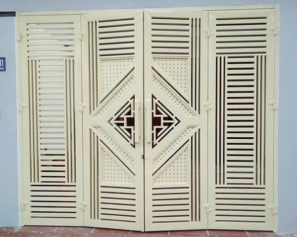 -Cửa cổng này được gia công, sản xuất bằng sắt hộp hay sắt ống. Các thanh sắt được đan dọc, đan ngang, sử dụng hình khối thường là vuông, tròn, phẳng.