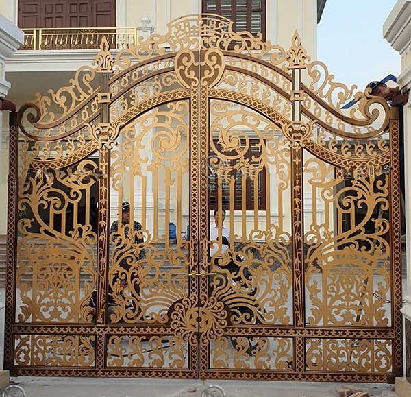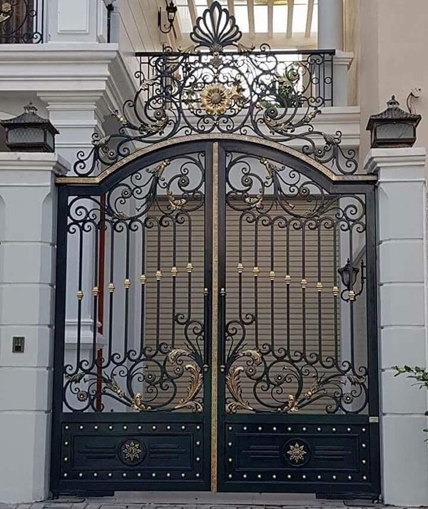 + Với mẫu cửa cổng này thường sử dụng khi ngôi nhà hoặc công trình được xây dựng theo phong cách Châu Âu, tân cổ điển hay cổ điển. Chúng có những hoa văn, họa tiết cầu kỳ, uốn lượn tinh xảo. Màu sắc chủ yếu được sử dụng là màu vàng đồng, đỏ kim, đen tuyền, nâu thẫm,… thể hiện lên sự uy nghi, bề thế và giàu có của chủ nhà. Và nổi bật lên nét cổ điển cho ngôi nhà. Cửa cổng sắt này thường được gia công sản xuất như uốn bằng tay, uốn bằng máy, cắt sắt CNC. Hoặc rèn thủ công theo bản vẽ thiết kế