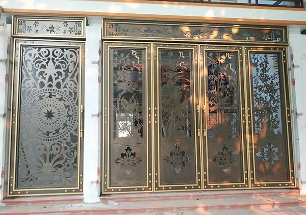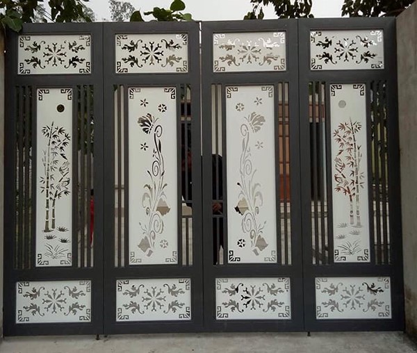 - Cửa cổng sắt cắt CNC mỹ thuật là cửa cổng sắt mà các hoa văn, họa tiết được cắt bằng máy CNC theo phương Laser hoặc Plasma, đây là phương pháp gia công mới, dùng máy móc và máy tính xử lý, giúp làm cửa rất nhanh, có thể cắt theo bất cứ hình thù nào khi mà phương pháp thủ công không làm được. Thường cửa cổng sắt CNC hay có các hoạ tiết hoa lá Tứ Quý hay các con vật trong Tứ Linh