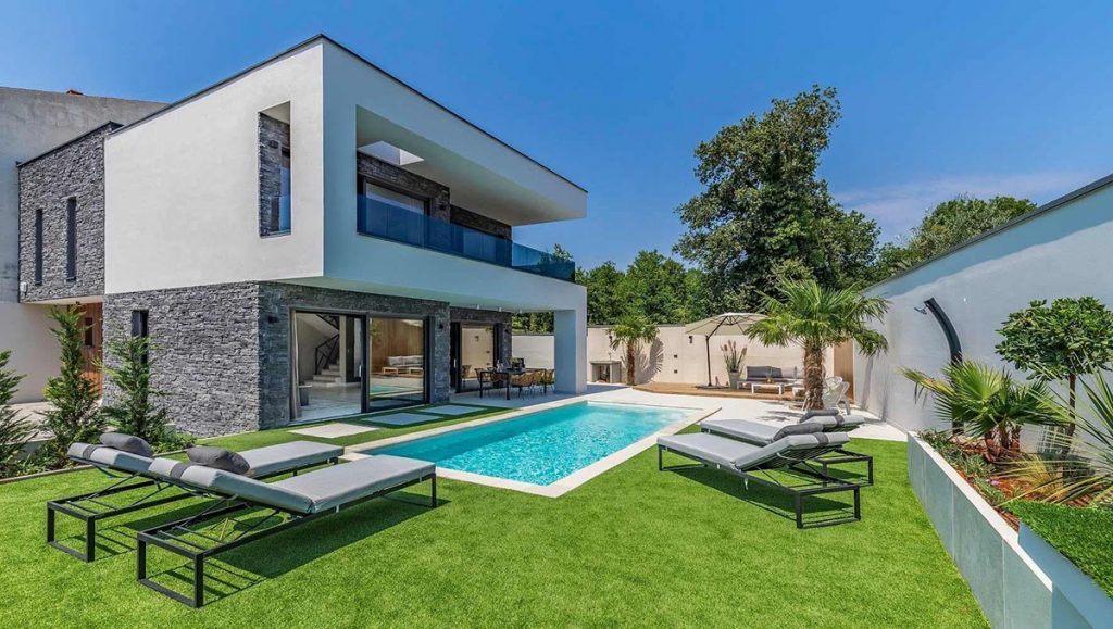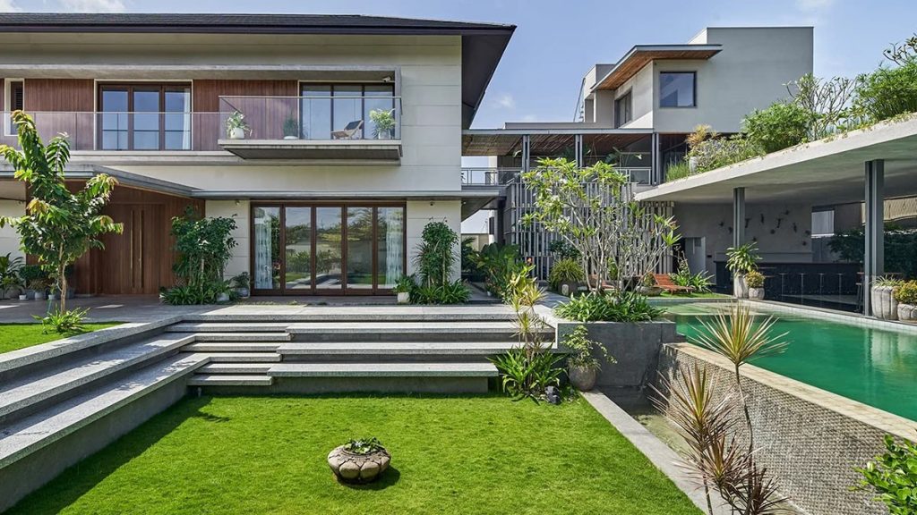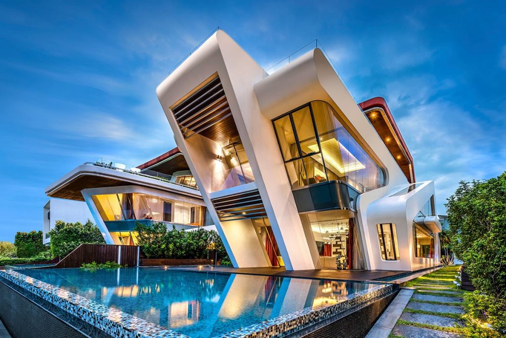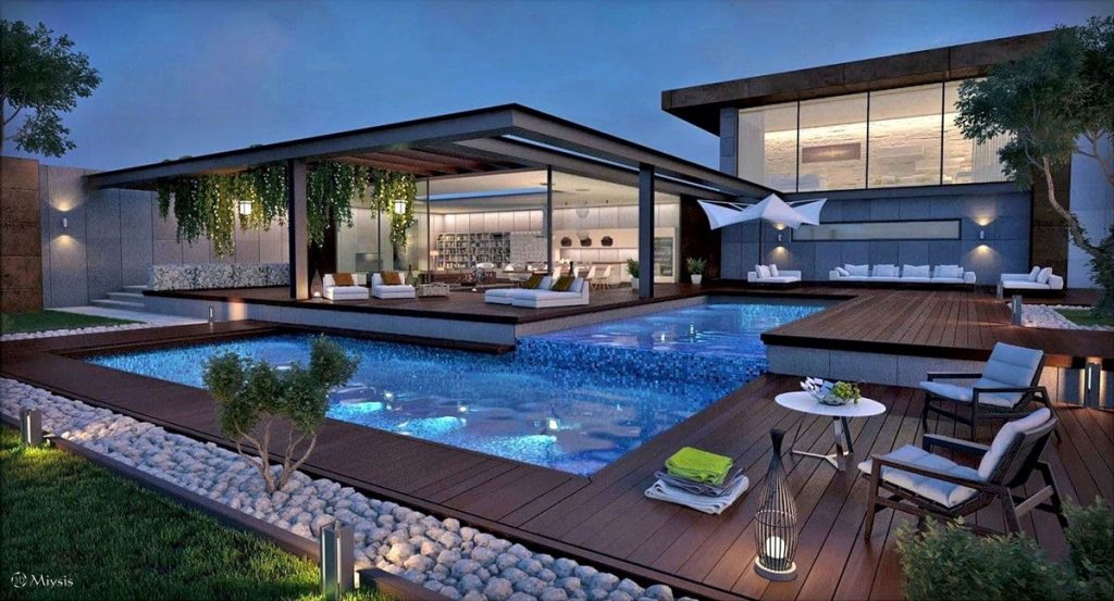 Mẫu thiết kế biệt thự đẹp có bể bơi chính là sự kết hợp hài hòa giữa con người và thiên nhiên nhằm tạo nên bức tranh tuyệt đẹp. Với những đường nét kiến trúc khỏe khoắn, cùng các khối đồ sộ kết hợp với thiết kế bể bơi. Tạo nên khung cảnh giàu tính thẩm mỹ, mang đến không gian nghỉ dưỡng hoàn hảo nhất cho gia đình bạn.