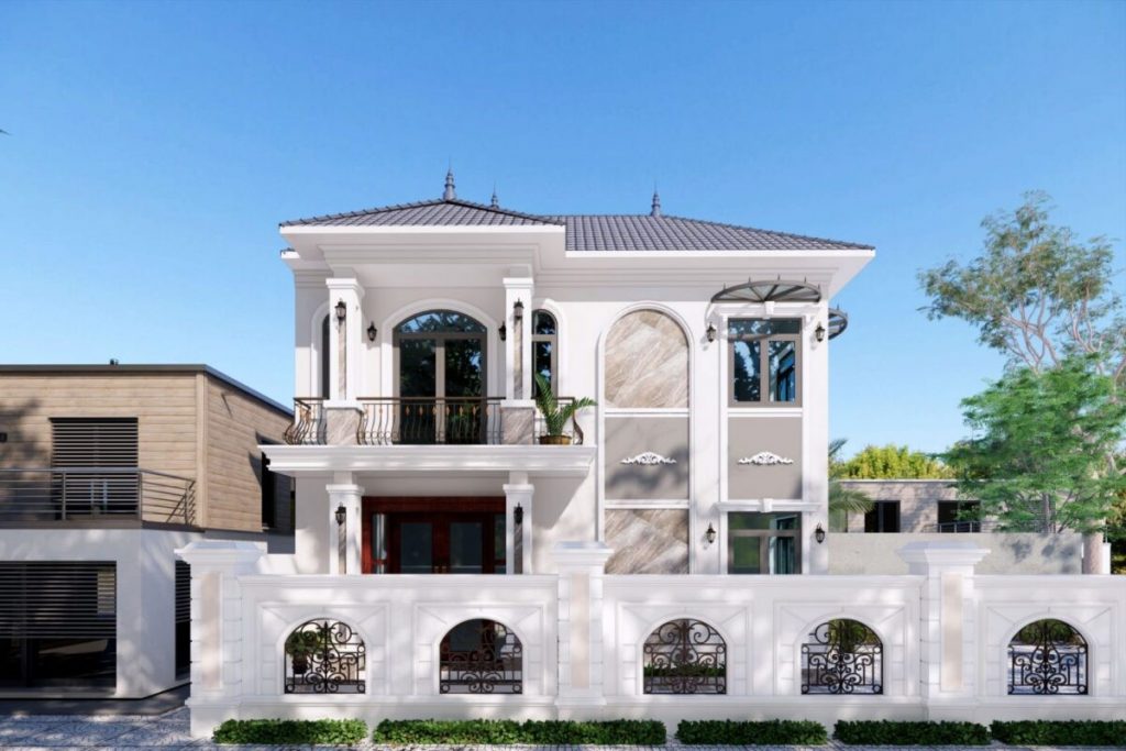 Biệt thự tân cổ điển là những công trình nguy nga, tráng lệ yêu cầu sự đầu tư tỉ mỉ và chau chuốt về hình thức. Tất cả những đường nét hoa văn tinh xảo thể hiện sự quyền quý và sang trọng.