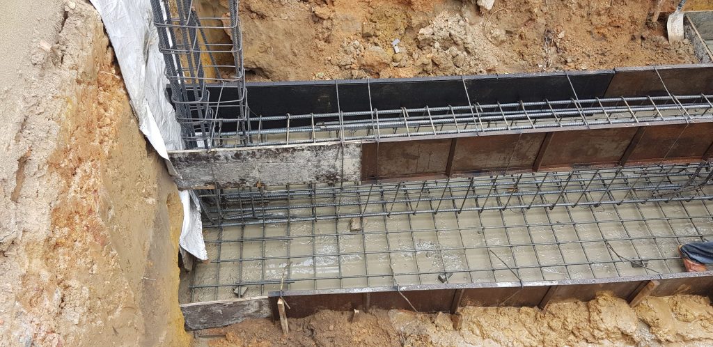 Nếu như mặt bằng hố móng đủ rộng lắp dựng cốt thép ở ngay trên đáy hố móng. Bạn đặt cốt thép chịu lực xuống phía dưới. Rồi mới đặt cốt thép phân bố lên trên và dùng thanh cũ ướm, buộc các mắt lưới. Những con kê lớp bè lồng bảo vệ cốt thép, tùy thuộc theo mật độ cốt thép đặt cách nhau từ 150 đến 200mm theo hai phương.