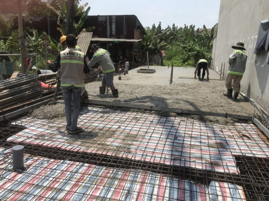 Đi vào giai đoạn cuối cùng là công tác bê tông. Công tác đổ bê tông phải đạt quy chuẩn quy phạm xây dựng nhà ở. Đảm bảo bê tông được đổ đầy, chắc, không lẫn rác hay chất bẩn.