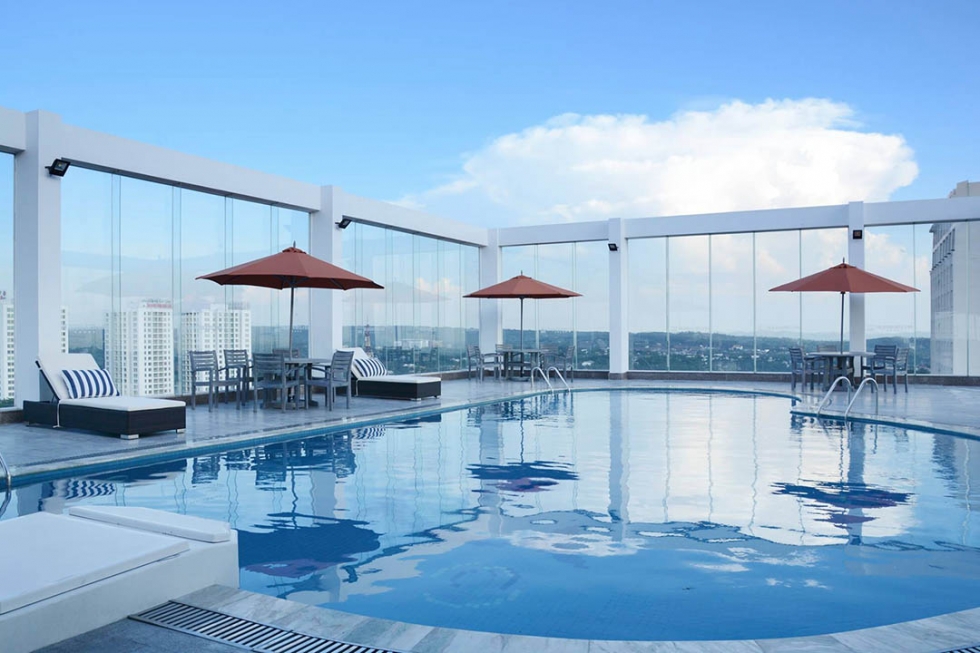 Hồ bơi trên sân thượng của biệt thự diện tích lớn