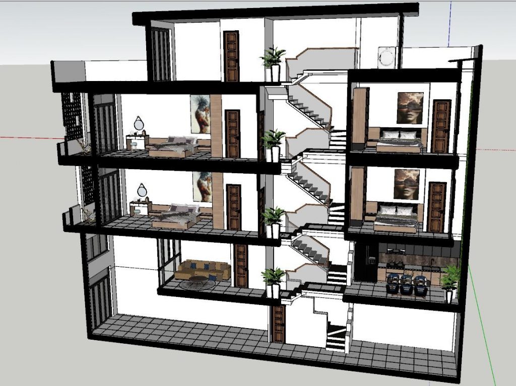 Kiểu nhà này được phân làm 2 loại chính, đó là xây theo chênh lệch độ cao trước sau và tạo một không gian tầng lửng. Dù áp dụng theo cách nào, xây lệch tầng đều giúp bạn tiết kiệm không gian một cách hiệu quả. Nhiều người ưa chuộng xây nhà lệch tầng bởi vì: